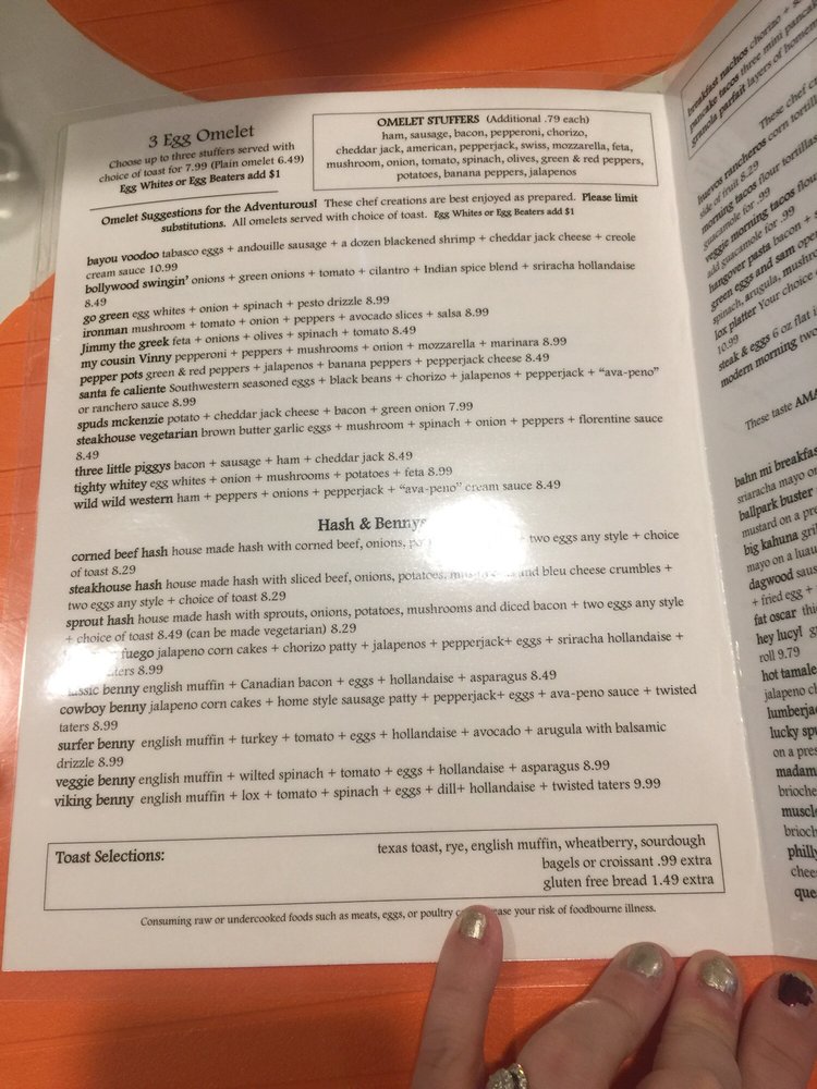 jalapeno corn cakes + home style sausage patty+pepperjack+ eggs + ava-peno sauce + twisted taters